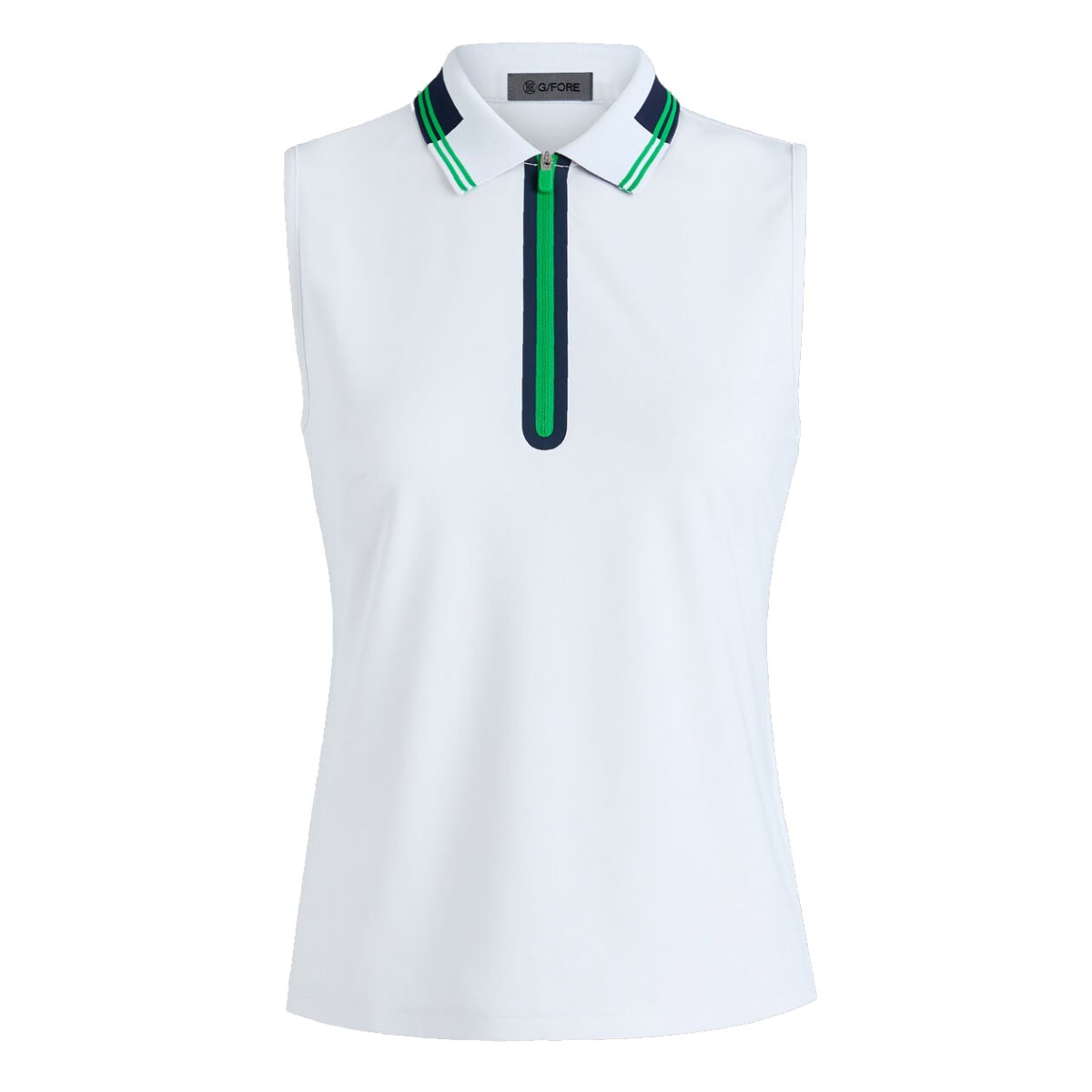 MADE WITH OUR BREATHABLE TECH PIQUÉ FABRIC, THIS SLEEVELESS POLO WILL BECOME A STAPLE IN YOUR CLOSET. DESIGNED WITH 4-WAY STRETCH, IT FEATURES MOISTURE-WICKING AND ODOUR-INHIBITING PROPERTIES, KEEPING YOU FRESH, DRY, AND COMFORTABLE ALL DAY LONG. WHETHER YOU PAIR IT WITH A SKORT OR TROUSERS, YOU'LL SURELY TURN HEADS ON THE GREENS.