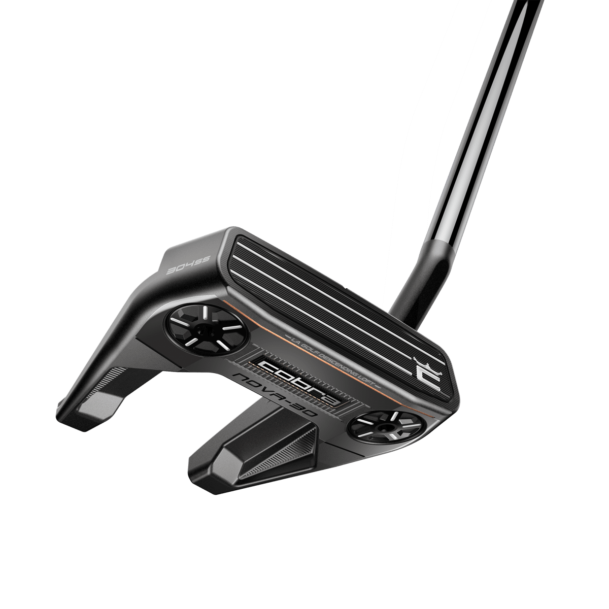 Cobra Vintage Nova - 30 er en del av Cobras Vintage-serien og er en Fang-putter laget av rustfritt stål med utskiftbare vekter i tå og hæl. Som standard er det to 15-grams vekter i sålen, disse kan byttes ut med tyngre vekter for å justere totalvekten eller tåfallet etter dine ønsker. Vektene selges separat. En kort siktelinje bak sweet spot og to lange på armene gjør det enkelt å sikte med putteren.